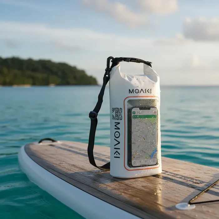 El Bolsito MOAKI KURA es un bolso impermeable compacto, diseñado para acompañarte en cada travesía acuática. Su ventana frontal transparente permite usar el celular sin sacarlo del bolso, mientras protege tus pertenencias del agua, la arena y el sol. Con una capacidad de 2.5 Lts.
